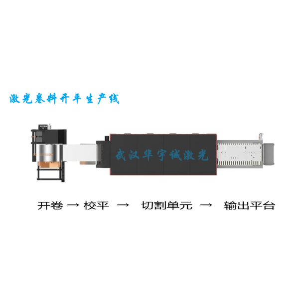 動(dòng)態(tài)高精高速全自動(dòng)激光開卷落料生產(chǎn)線,采用激光切割技術(shù)的開卷落料生產(chǎn)設(shè)備,由上料臺(tái)車、開卷機(jī)、校平機(jī)、伺服送料機(jī)、激光切割裝置、切割平臺(tái)、碼垛裝置、廢料處理系統(tǒng)、液壓氣動(dòng)系統(tǒng)及電氣控制系統(tǒng)組成。